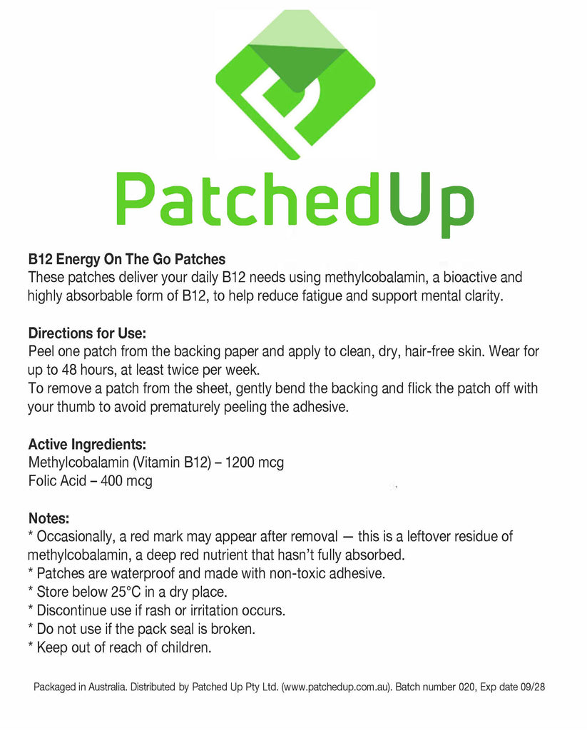 Smart Vitamin B12 Patches – Methylcobalamin for Energy & Focus